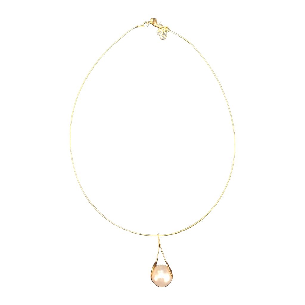 Ένα χειροποίητο κόσμημα από επιχρυσωμένο ορείχαλκο 18Κ, όπου ένα μοναδικό μαργαριτάρι γίνεται η καρδιά ενός σουρεαλιστικού κερασιού. Η φόρμα του κολιέ παίζει με την αναλογία και την απλότητα, δημιουργώντας μια λεπτή ισορροπία ανάμεσα στο πραγματικό και το φανταστικό. Το αποτέλεσμα είναι ένα μικρό γλυπτό που αιωρείται με κομψότητα, σχεδιασμένο για να ξεχωρίζει διακριτικά σε κάθε εμφάνιση.