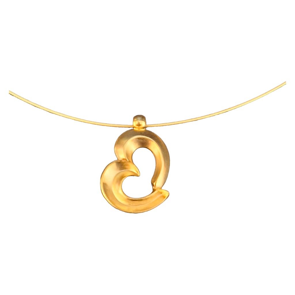 Αφήστε το βλέμμα σας να χαθεί στη σοφιστικέ λάμψη του 18Κ επιχρυσωμένου ορειχάλκινου κολιέ, ένα κόσμημα που αναπνέει μέσα από τη μορφή της καρδιάς. Η ανάγλυφη, σουρεαλιστική επιφάνεια παίζει με το φως και τη σκιά, δημιουργώντας ένα αίνιγμα κομψότητας που αγγίζει την ψυχή. Κάθε καμπύλη, κάθε ανάγλυφη λεπτομέρεια, μοιάζει να αφηγείται μια ιστορία διαχρονικής ομορφιάς.