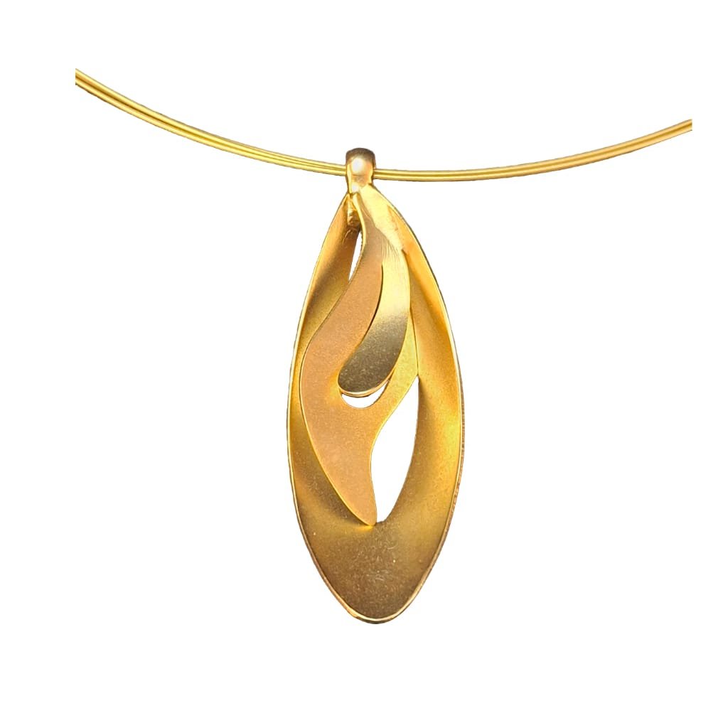 Επιχρυσωμένος ορείχαλκος 18Κ με σατινέ φινίρισμα. Σχεδιασμός εμπνευσμένος από το σύμβολο της ζωής και τη φυσική ροή της ενέργειας. Θηλυκό, οργανικό σχήμα που εκφράζει γονιμότητα, φως και αναγέννηση. Μέγεθος 40cm ρυθμιζόμενο Χειροποίητο στην Ελλάδα